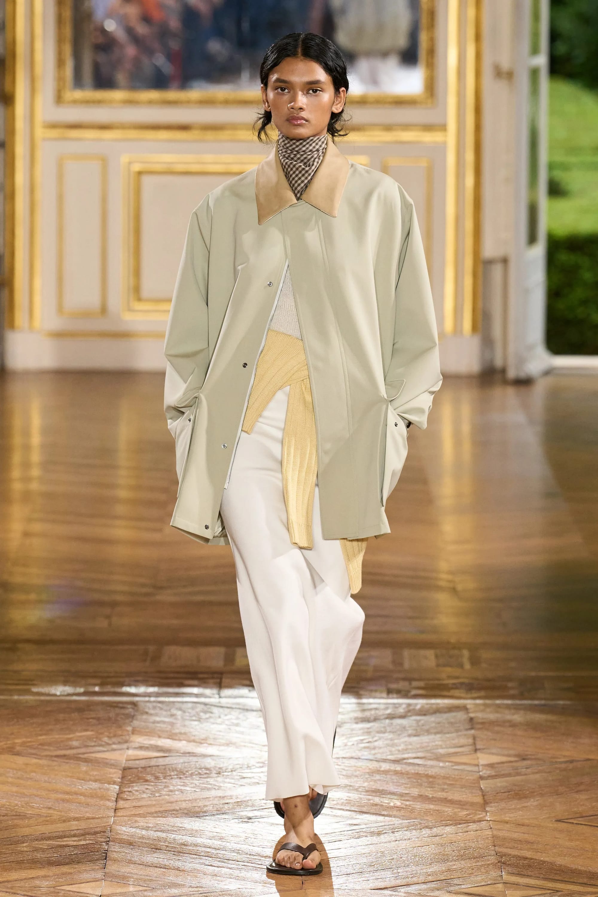 This year's polo knits are either closer to the body or worn as an over-layer. If oversized, they're crafted in thinner yarns that trace your silhouette rather than obscuring it. The key detail: buttoned plackets are everywhere, either as partial button-ups or full cardigans.