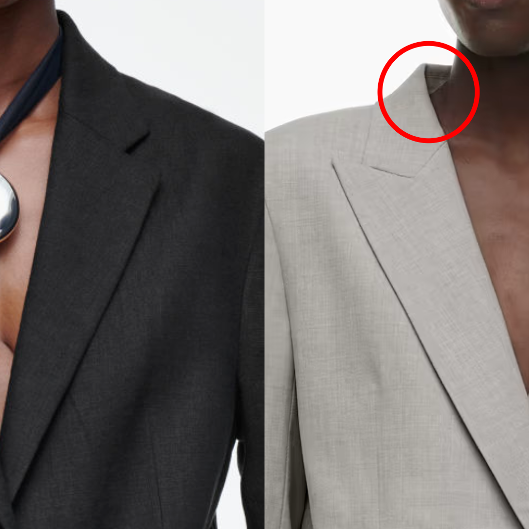 The collar should cradle the neck smoothly, not jut away from it. It should follow the contours without gaps or buckling. If you have a blazer in your wardrobe and notice the collar standing away from your neck, try wearing it with a shirt that has a voluminous collar to fill in the gap.