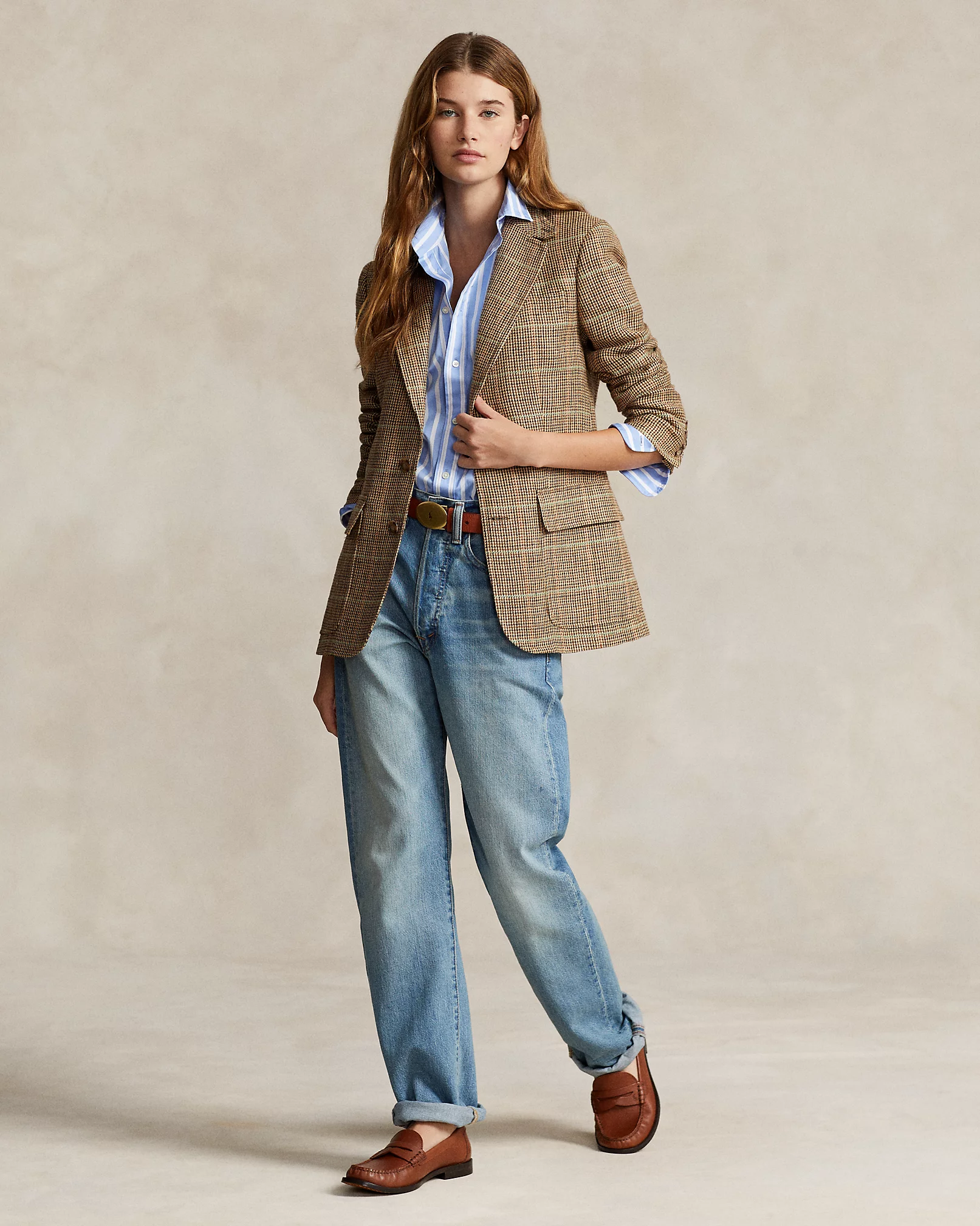 Polo Ralph Lauren plaid blazer, flowing with jeans. Banana republic fine suit jacket confusingly worn with jeans, then with its matching trousers