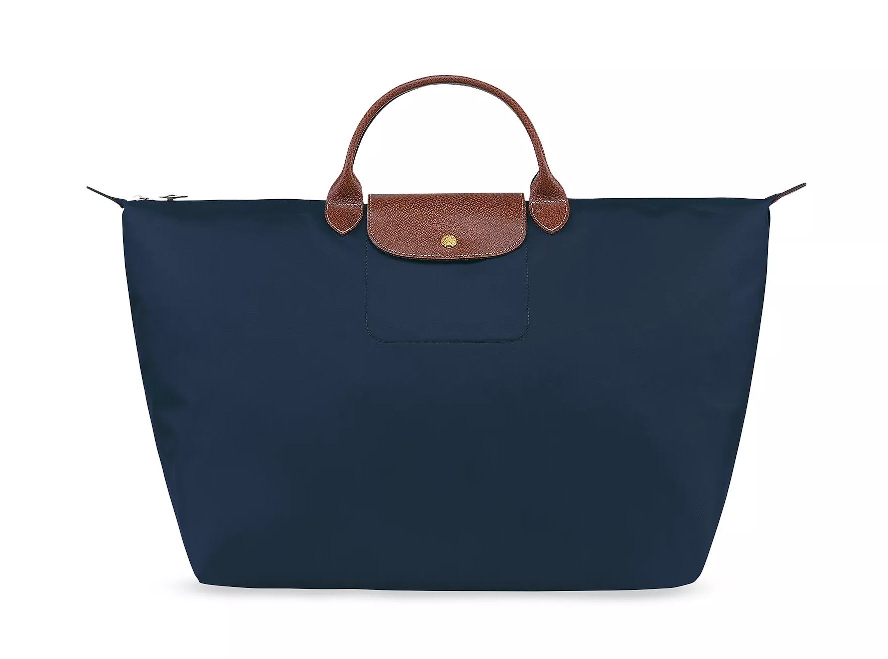 From the Le Pliage Collection. Drawing inspiration from origami, Longchamp's travel bag is crafted of durable canvas with a unique foldable design. This iconic silhouette is finished with a signature horse motif at the leather flap.