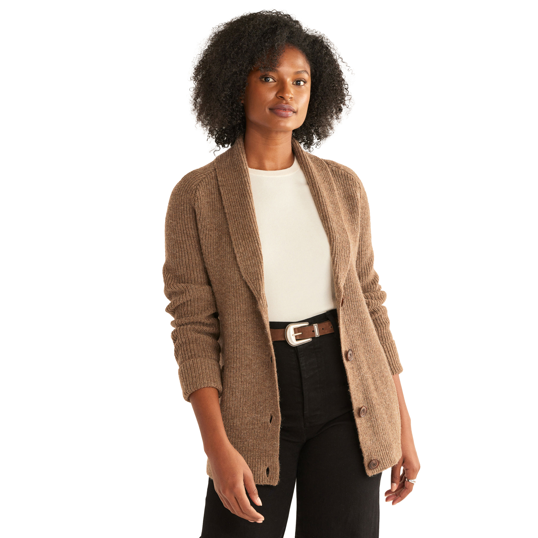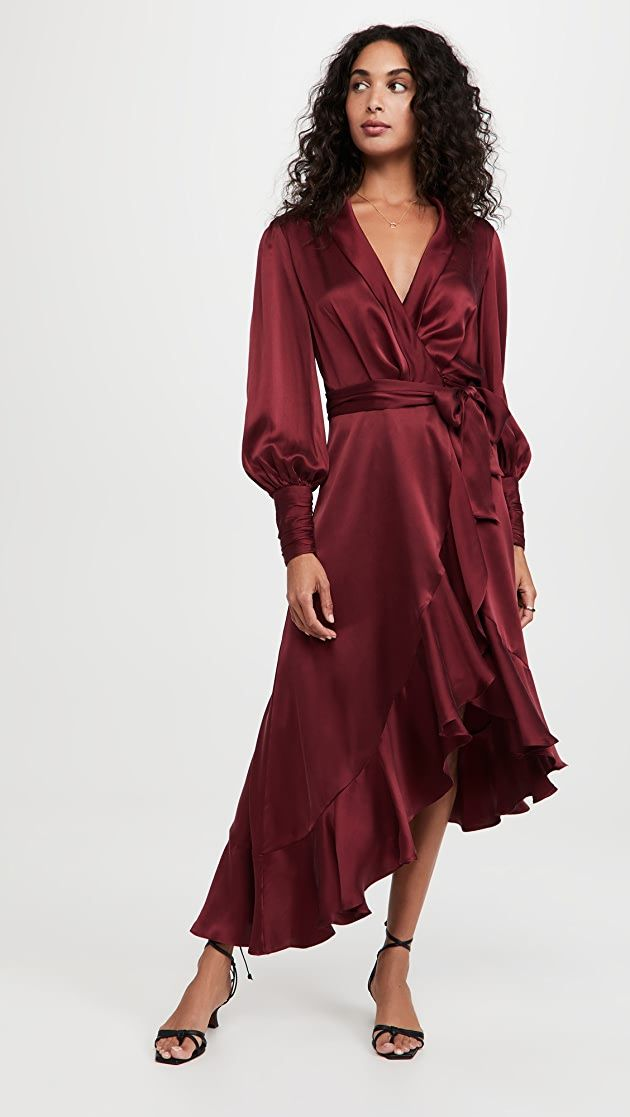 Pendleton's shawl collar shetland cardigan, Zimmermann's silk wrap dress