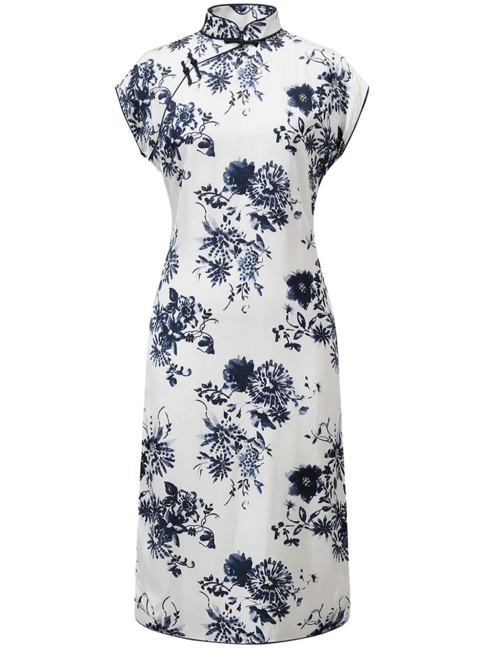 The Mandarin collar is a specific variation of the band collar. It features rounded ends which form a gap in the center, and it looks like the collar of the qipao, or a Chinese "banner dress" originating in the 17th century during Manchu rule.