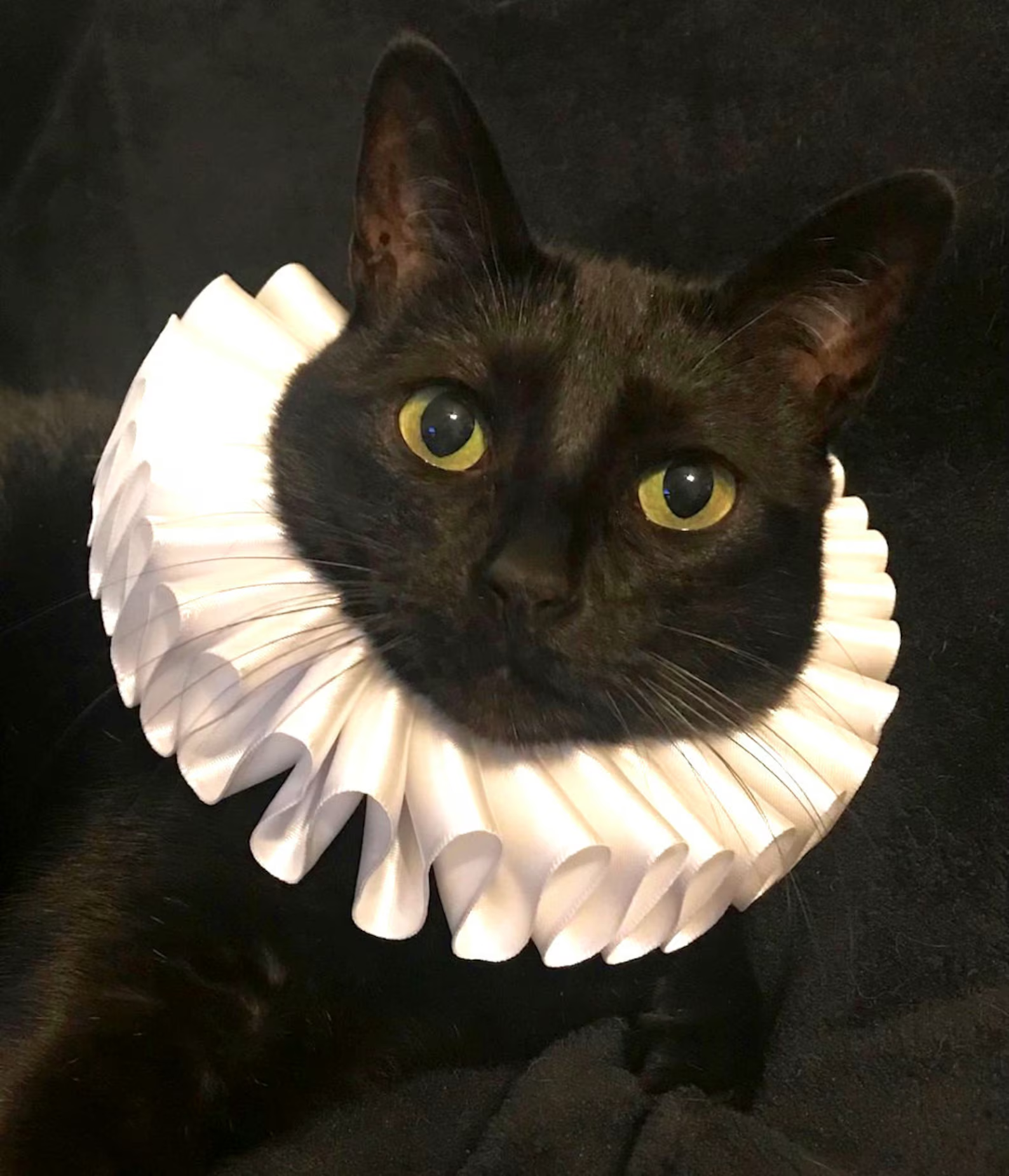 Queen Elizabeth I circa 1575 and a cat in a ruff collar