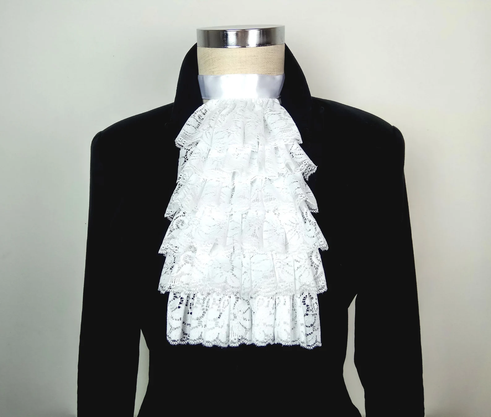 A Jarbot collar consists of ruffles or frills attached to the neckline, and it's a standalone, removable accessory. The Jarbot is derived from men's neckwear in the 17th and 18th centuries, and it's usually made of lighter, more delicate fabrics like lace, chiffon, or fine cotton.