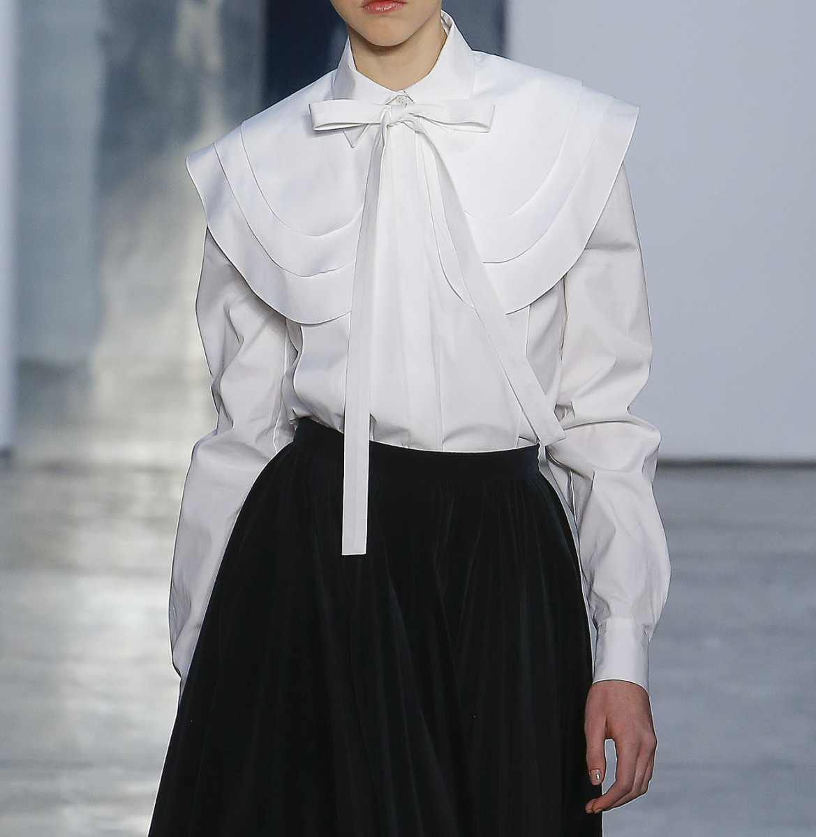 Lafayette 148 portrait collar shirts in white and charcoal, look 1 from Altuzarra's fall 2020 presentation