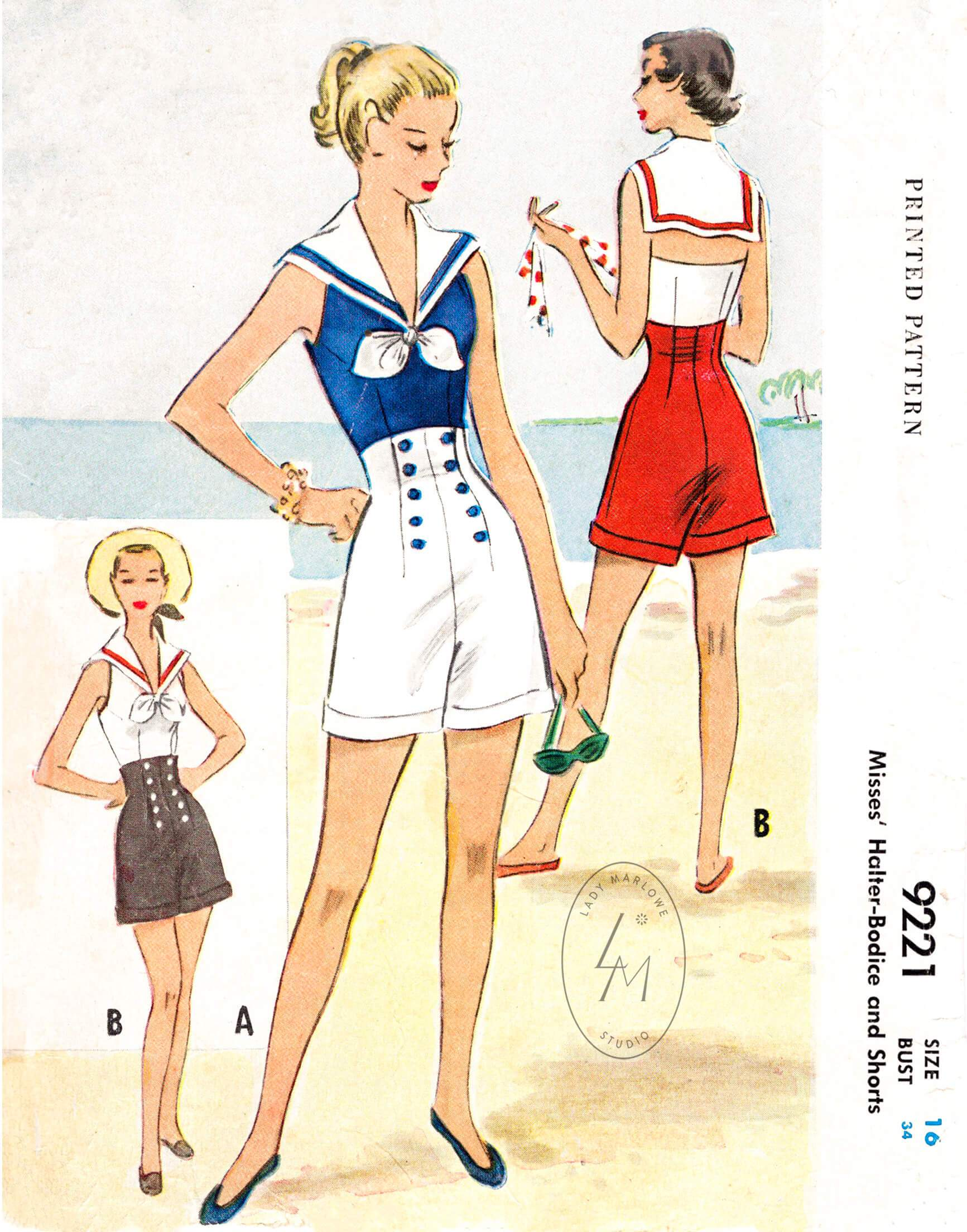 1952 sewing pattern package, Dior's marnière sweater, 1920s U.S. navy middy shirt