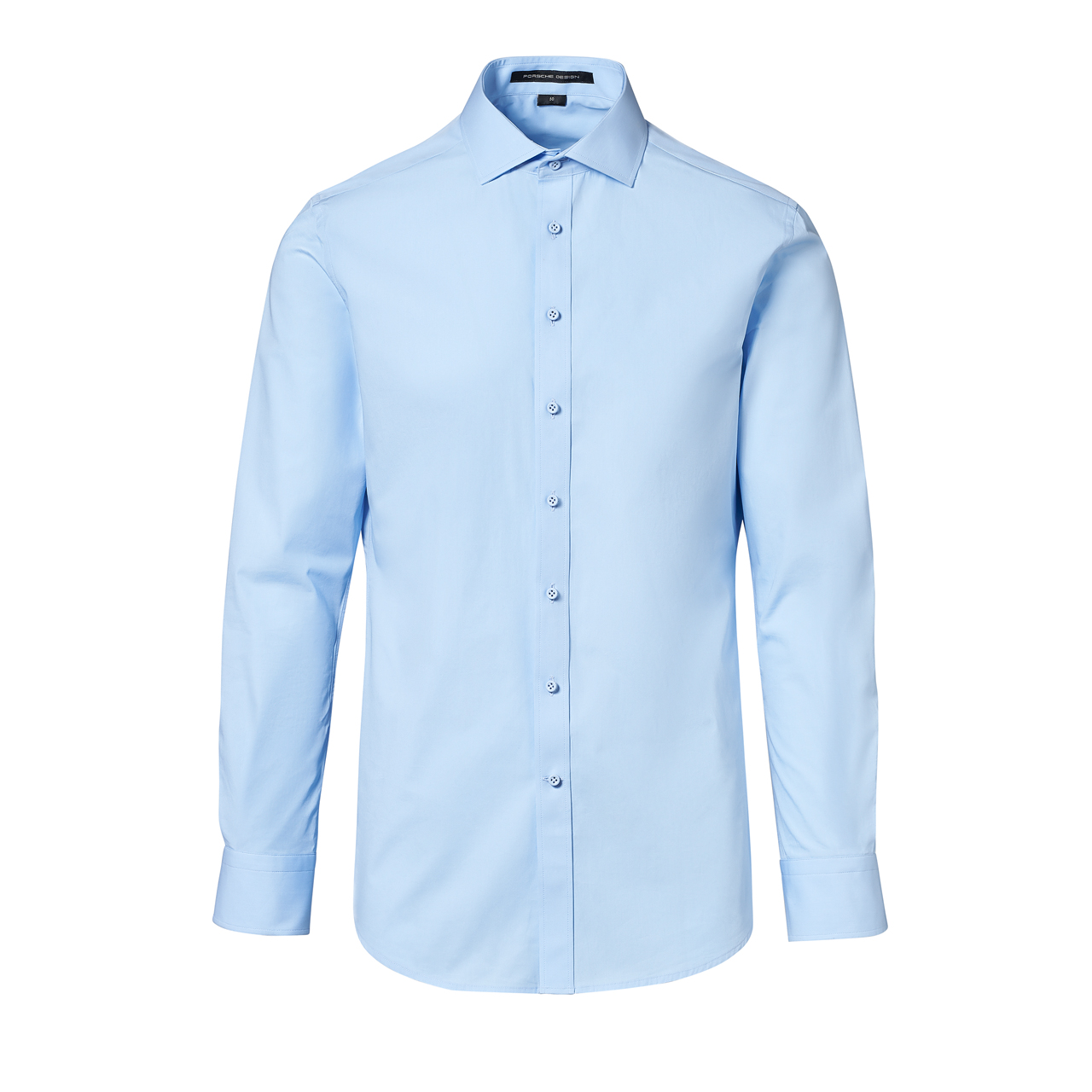 When compared to a traditional collar, the spread collar's points appear farther from each other. They create more room for a tie knot, and they're generally considered a bit more formal than traditional collars – but overall formality of a shirt depends numerous factors, including fabric, color, pattern, and how it's worn. The spread collar is more common in Europe than Stateside.