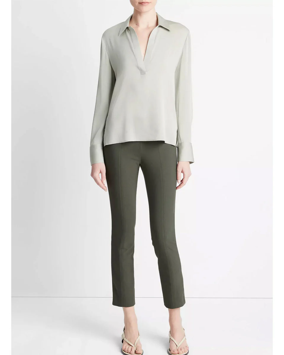 Banana Republic's Luna sweater; Vince's vince stretch-silk polo blouse worn more closed or open
