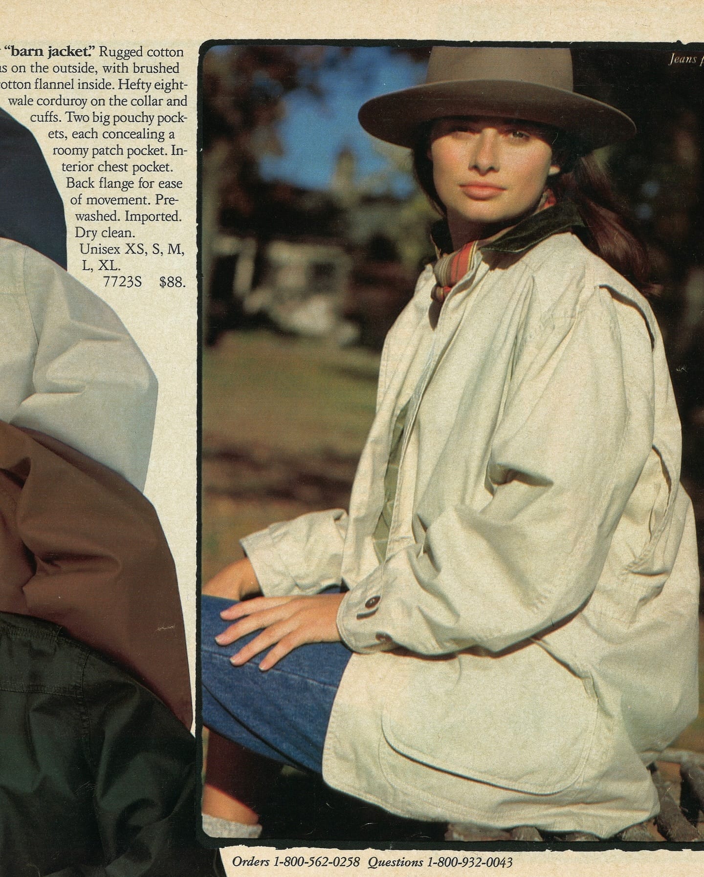 The 1990s brought a crucial democratization moment through J.Crew. J.Crew introduced their barn jacket in 1983 as part of their original mail-order catalog collection, when the brand was called Popular Merchandise. During its decade-plus original run (J.Crew discontinued the jacket in the late 1990s), J.Crew made the barn jacket accessible to middle-class Americans, stripping away its exclusive associations and positioning it as canonical Americana.