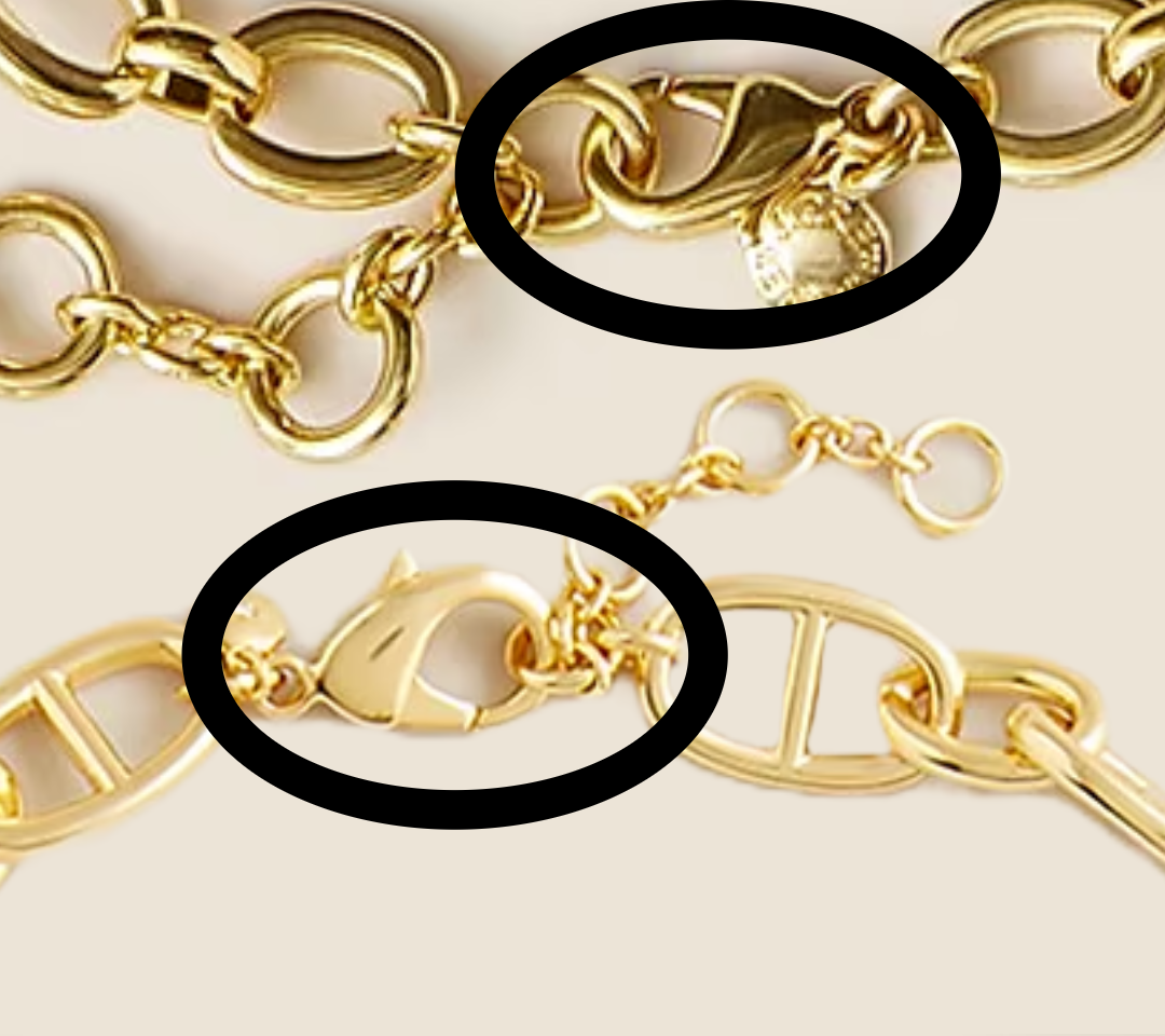These two J.Crew necklaces have different styles but use the same lobster clasp