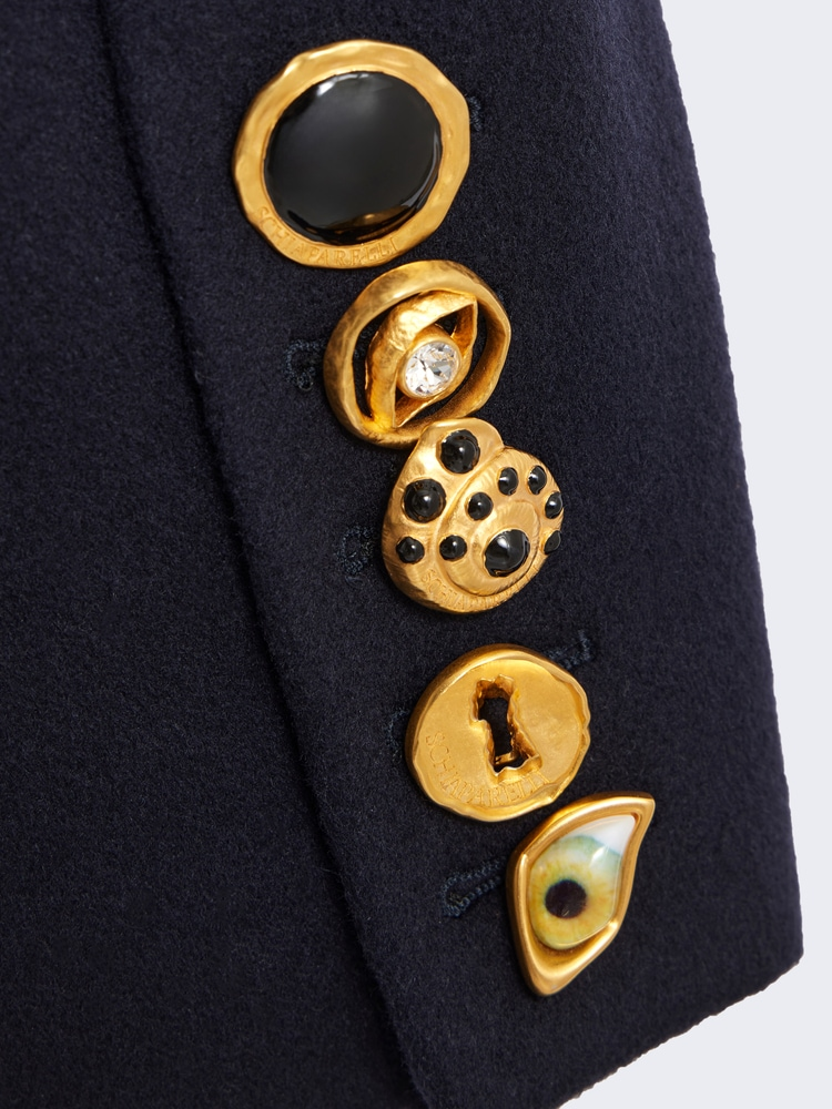 The gold tone that influenced our current jewelry: buttons of the Schiaparelli's Bijoux Buttons Peacoat