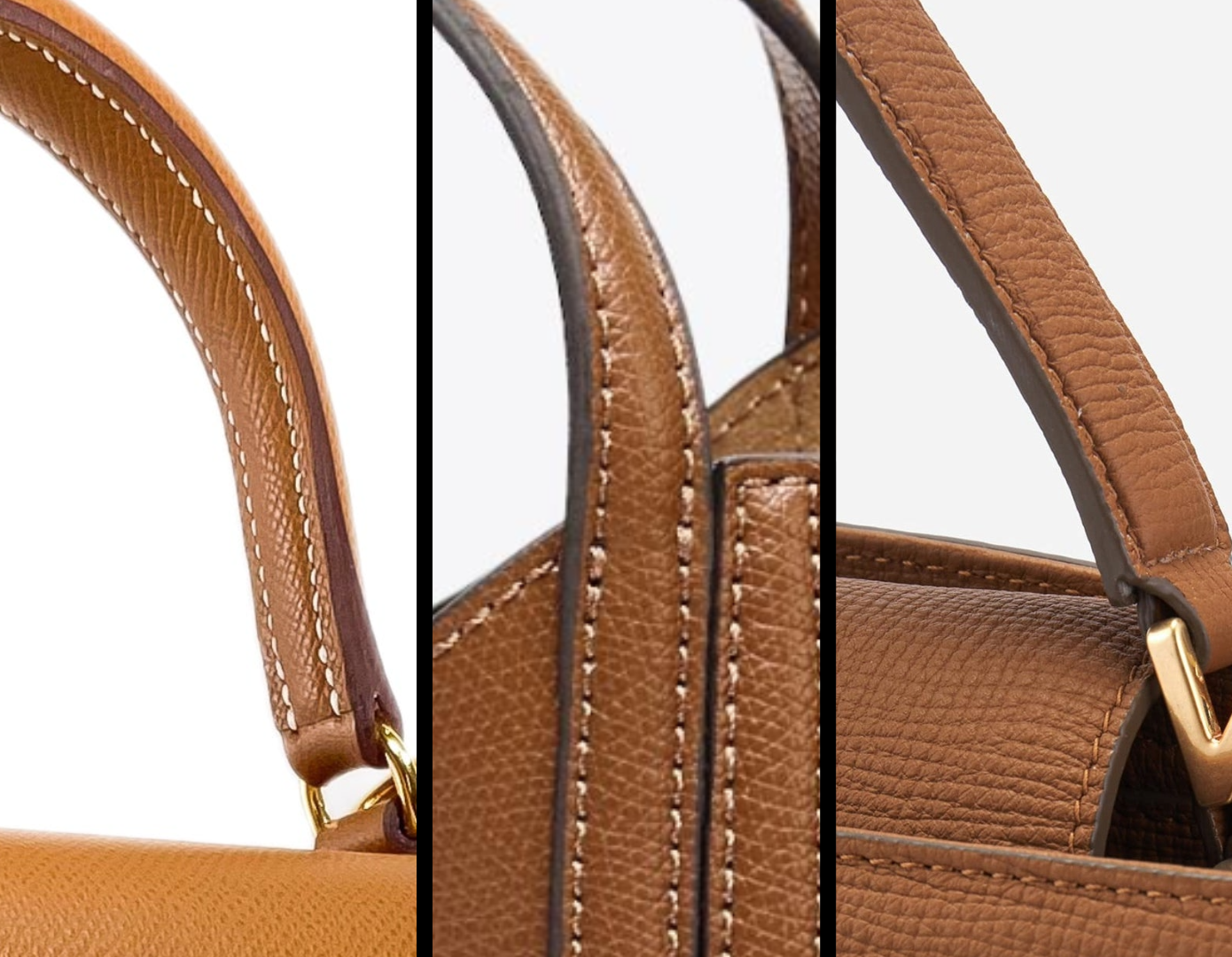 Luxury brands like Hermès place their topstitching with surgical precision: close to the edge, with proper thread tension that doesn't sink into or tear the leather surface. But when you see topstitching that creates visible indentations or rips the leather, you're looking at either poor needle choice, dry leather, or both – telltale signs of rushed production regardless of the price tag.